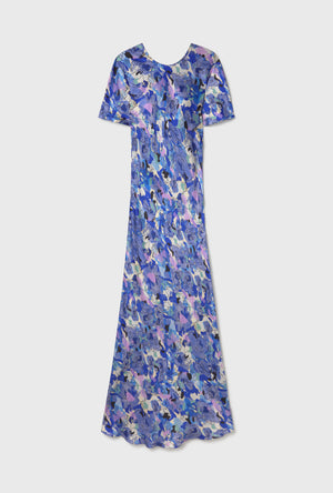 Short Sleeve Bias Dress Cornflower Floral