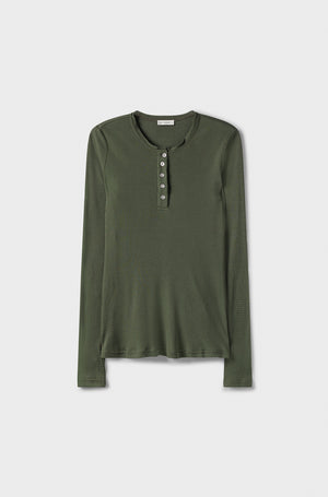 Ribbed Long Sleeve Henley Cedar