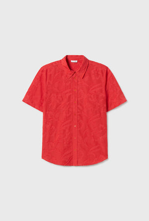 Clip Silk Short Sleeve Boyfriend Shirt Geranium
