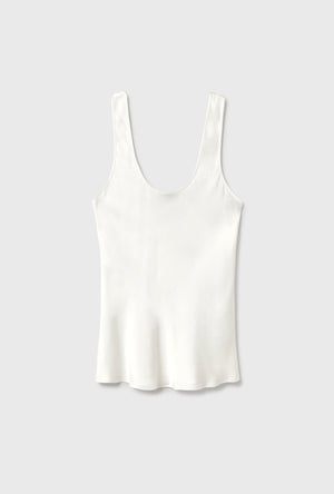 Silk Wool Ribbed Essential Tank White
